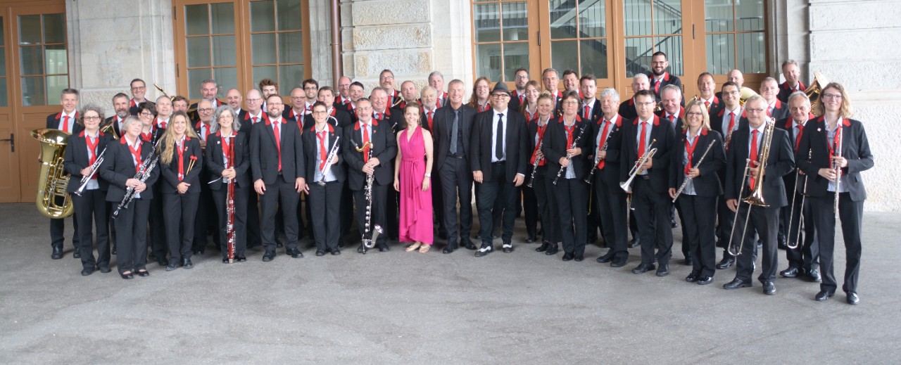 … ein Blasorchester, das für einen Teil des Repertoires Unterstützung von unserem Gesangsduo Meribel Hagen und Thomas Straumann erhält. Für die aussergewöhnliche Kombination arrangiert unser Bandleader Gilbert Tinner regelmässig bekannte Gesangsnummern.